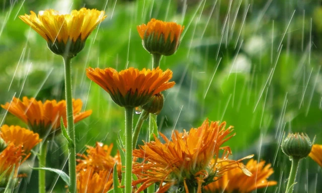 Fungal diseases such as rusts, blackspot, brown rot, powdery mildew anddowny mildew are more prevalent in damp warm conditions. The wet leaves encourage fungal growth and many fungal spores are spread by water.