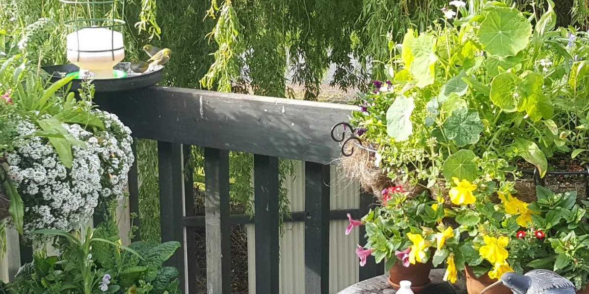 Hanging baskets and containers have the great benefit of being portable; meaning you can change the arrangements depending on the stage of growth, colours, size, etc. and you can take them with you if you move house.