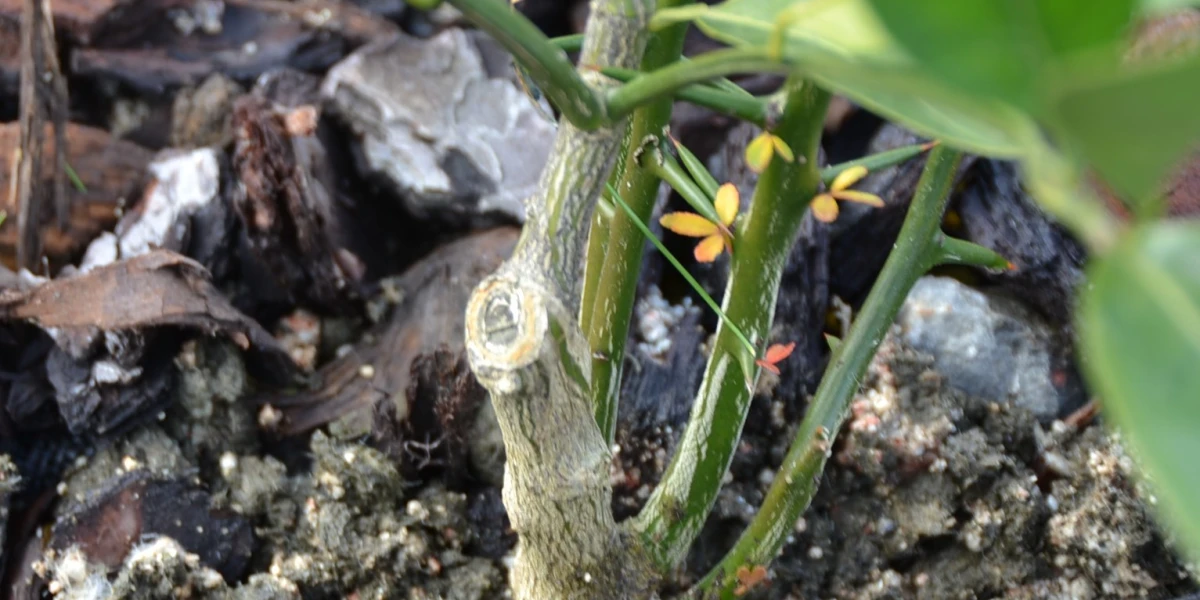 If you notice a sucker emerging from below the graft line (as in the header image) it should be cut off close to the trunk so that it does not take over the plant and use energy that should be going to the scion. Using a sharp, clean pair of secateurs or a knife, cleanly cut the plant sucker as close to the tree as possible leaving the collar (where the tree sucker meets the tree) to help the wound recover.