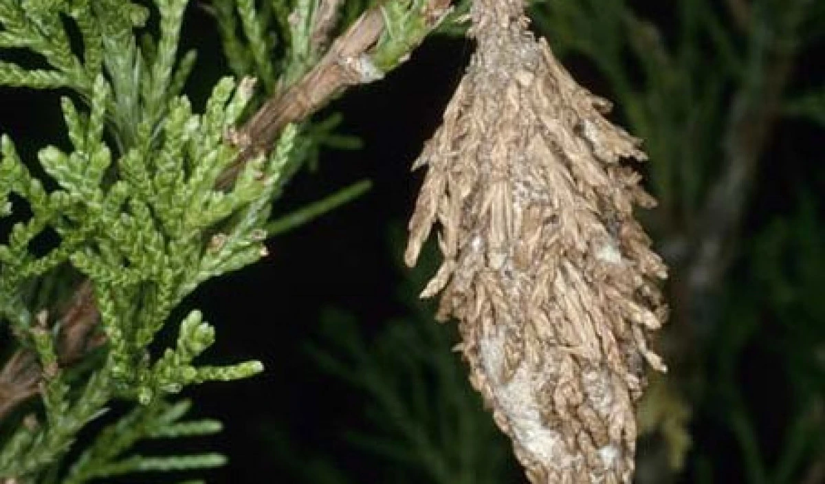 The caterpillars of this moth live in silk bags that hang from trees and shrubs that they eat. They disguise the bags bug attaching pieces of twig and foliage.