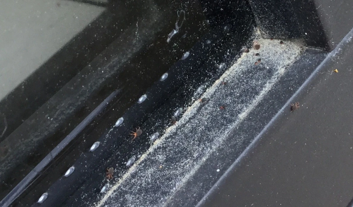 Red clover mites are often found crawling up the exterior surfaces of houses and other buildings. They are usually associated with lawns but will feed on other garden plants and move onto or into buildings in autumn when numbers explode.