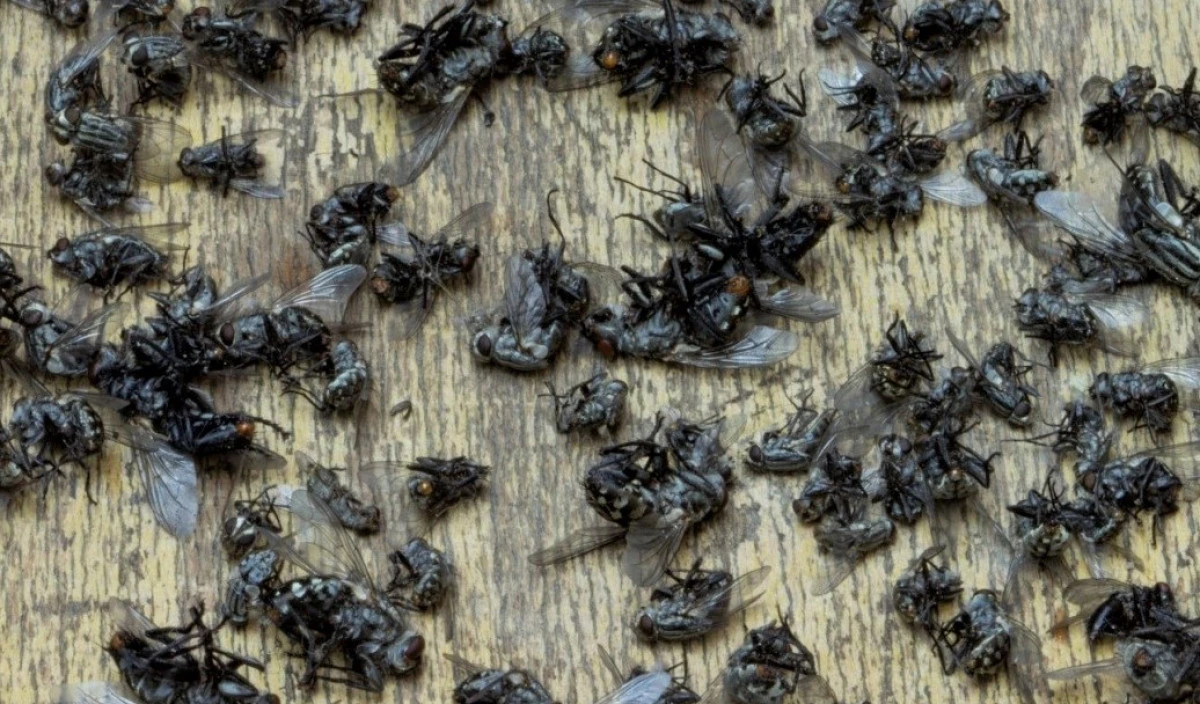 Cluster flies are dull black flies that in autumn cluster together in large numbers in dark dry places like attics to survive winter.