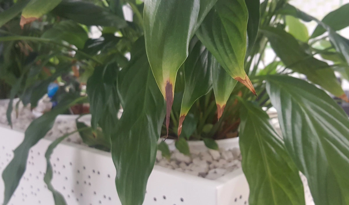 The dry environment found indoors often causes the tips and edges of houseplant leaves to yellow and brown off.