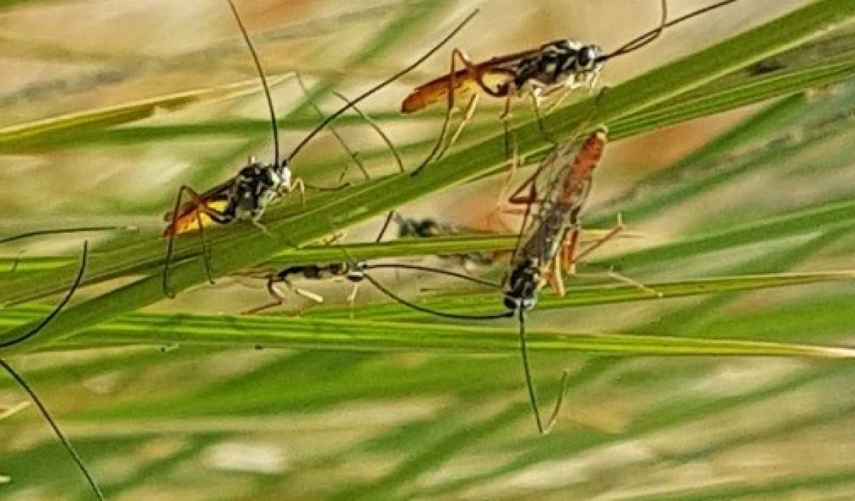 Ichneumon wasps are a parasitoid wasp family. They can look concerning, but unlike the social wasps who have stings ichneumonids have ovipositors instead of stingers, and they are all solitary.