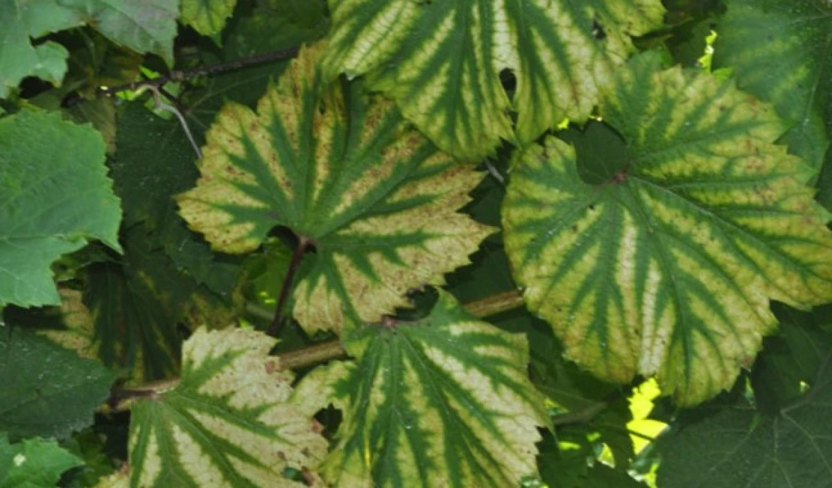 Check for yellowing (chlorosis) lower older leaves with darker veins. Yellowing areas will start to brown off and die from the edges of the foliage.