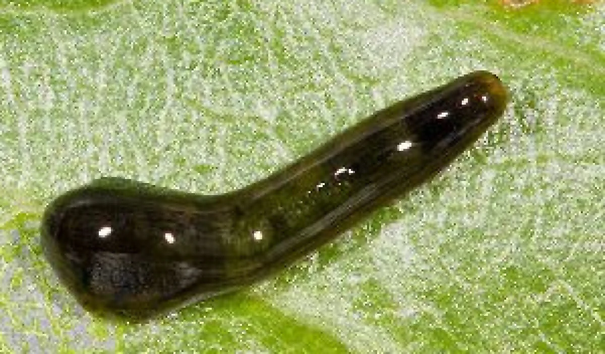 Pear and cherry slugs are leaf damaging larvae of a sawfly. These are mistaken for slugs because they are slimy looking. The larvae feed on the upper surfaces of the leaves of fruit trees including pear, cherry, apple, quince and others. They will eat the leaves until there is only a skeleton of leaf veins remaining.