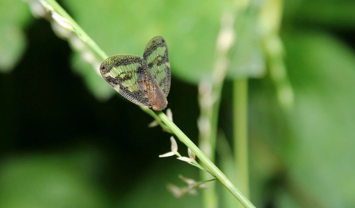From late January on the nymphs go through their final molt and change into the small brown adults that look like small smooth winged moths that are often seen in a queue like line on the stems of plants. The adults will be be active through to autumn laying eggs in small branches of their target plants. As they withdraw their ovipositor (egg laying tube) they pull out small white tufts of plant material which show up as white dots on your plants.