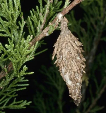 The caterpillars of this moth live in silk bags that hang from trees and shrubs that they eat. They disguise the…