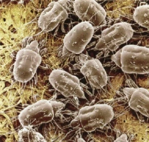 House dust mites (HDM) are only just visible to the naked eye on a dark background. House dust mite waste produc…