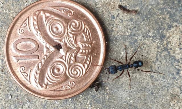 Blue pony ants are large ants commonly found in northern parts of New Zealand.