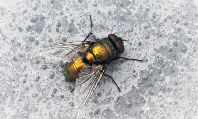 Blow flies are large flies whose larvae feed on decaying animal material.