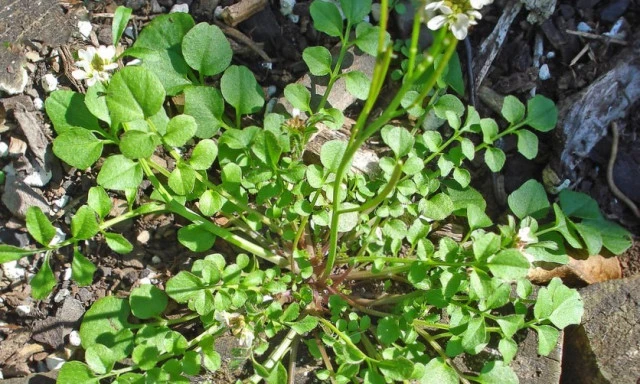 Bitter cress is a common weed in waste places, flowerbeds and lawns.